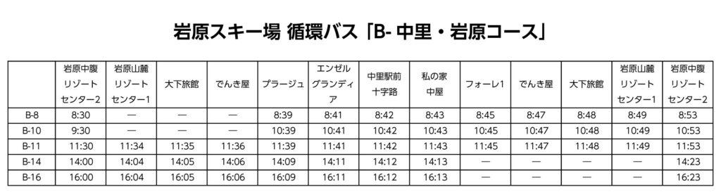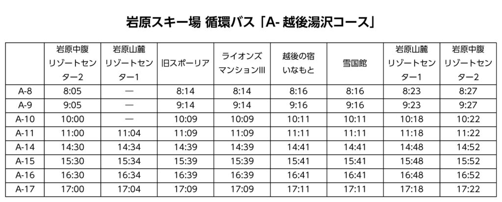 越後湯沢─岩原スキー場間 無料送迎バス時刻表 予約不要